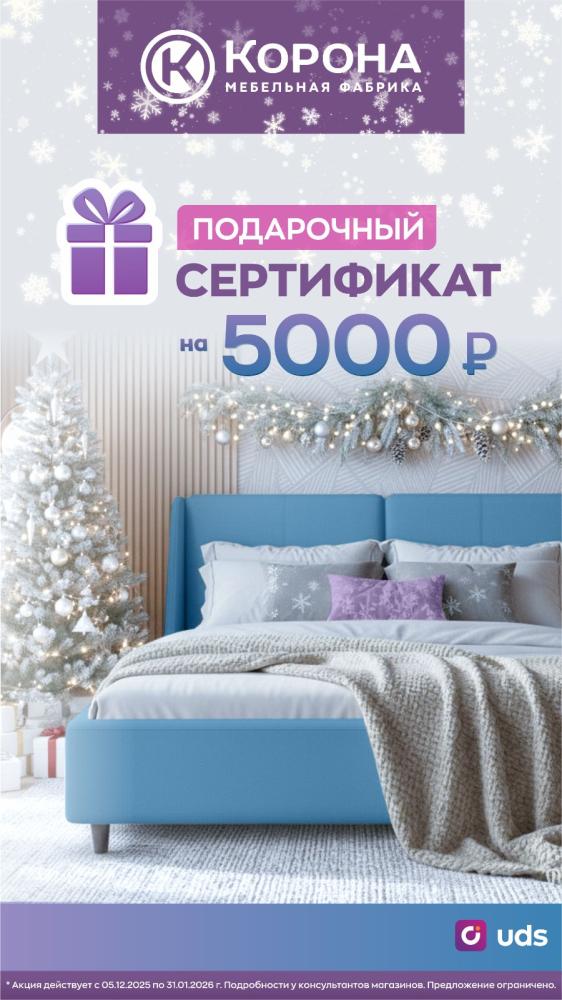 Сертификат на 5 000 ₽ от фабрики «Корона» — ваш новогодний подарок!